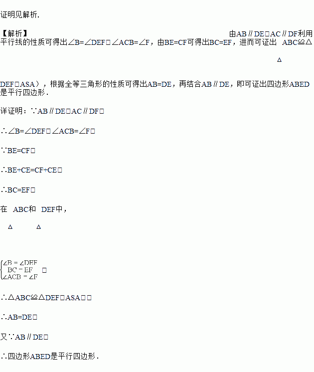 如图,,,,在一条直线上,已知,,,连接.求证:四边形是平行四边形.