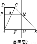 【答案】分析:(1)过点C作CF⊥AB于F,则四边形AFCD为矩形,易知CF=4,AF=2,利用平行线分线段成比例定理的推论可知Rt△AQM∽Rt△ACF,那么可得比例线段,从而求出QM;