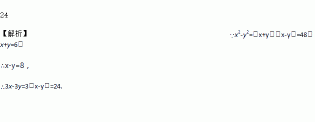 若x2-y2=48,x+y=6,则3x-3y=_____.