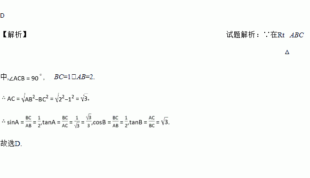 在Rt△ABC中,∠ACB=90°,BC=1,AB=2,则下列结论正确的是( )