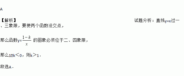 的图象与直线y=x没有交点,那么k的取值范围是( )