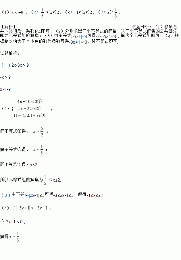 解下列关于x的不等式(组):