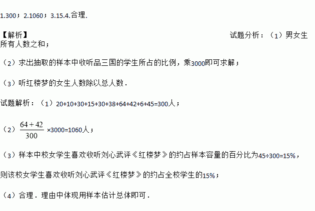 (3)估计该校女学生喜欢收听刘心武评《红楼梦》的约占全校学生的____%;