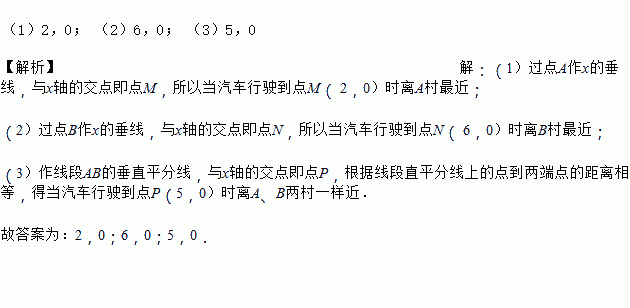 (3)当汽车行驶到点P(___________)时离A、B两村一样近.