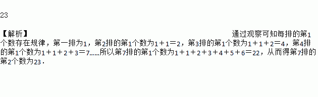 将正整数按如图所示的规律排列下去,若用有序实数对(n,m)表示第n排,从左到右第m个数,如(4,3)表示实数9,则(7,2)表示的实数是________.