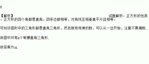正方形ABCD的对线AC、BD相交于点O,那么共得到_______个等腰直角三角形.