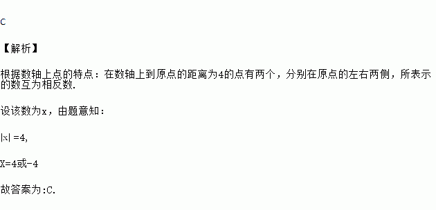在数轴上与原点的距离为4个单位长度的点表示的数为( )