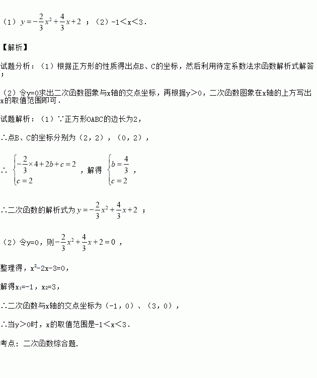 如图,在平面直角坐标系xOy中,边长为2的正方形OABC的顶点A、C分别在x轴、y轴的正半轴上,二次函数y=