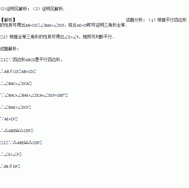 (1)△ABE≌△CDF;
