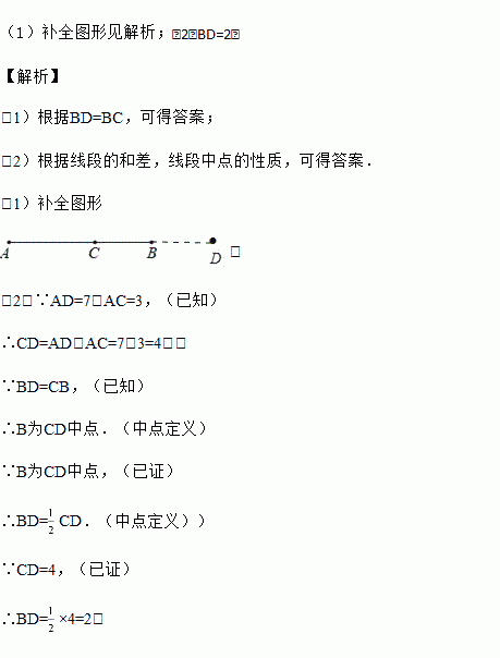 如图,点C是线段AB上的一点,延长线段 AB到点D,使BD=CB.