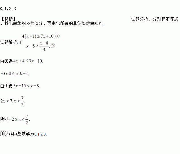 解不等式组并写出它的所有非负整数解.