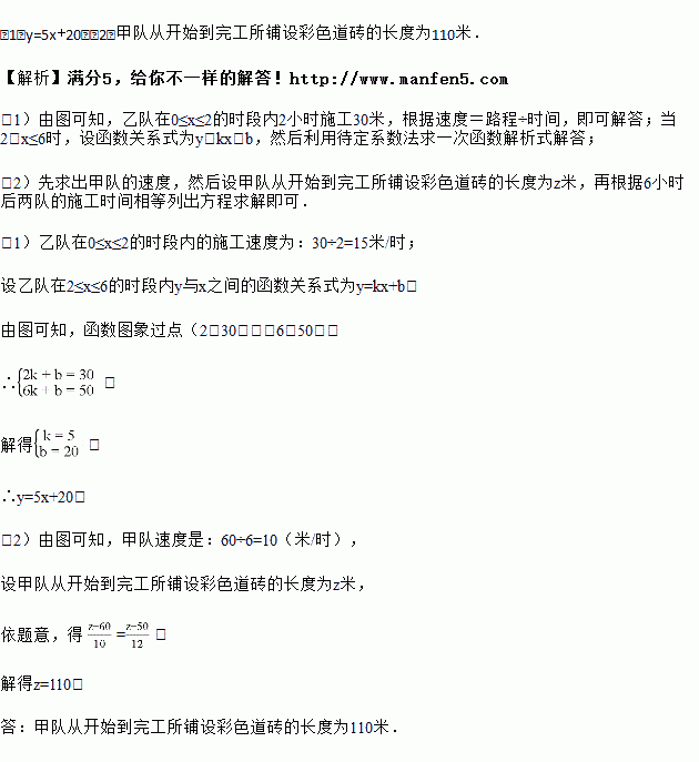 (2)如果甲队施工速度不变,乙队在施工6小时后,施工速度增加到12米/小时,结果两队同时完成了任务,求甲队从开始施工到完成所铺设的彩色砖道的长度为多少米?