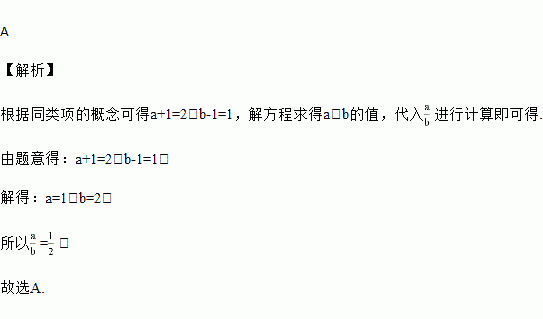 如果2xa+1y与x2yb﹣1是同类项,那么的值是( )