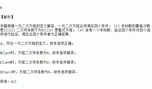 A. (a2+1)x2=4 B. (a﹣2)x2=2 C. ax2+3x﹣2=0 D. 2x2+ax﹣1=2x2