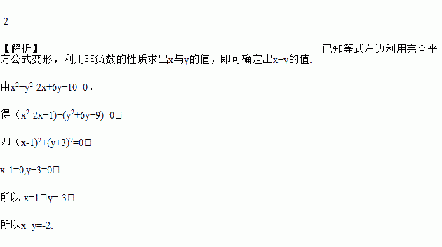 已知x2+y2-2x+6y+10=0,求x+y的值.