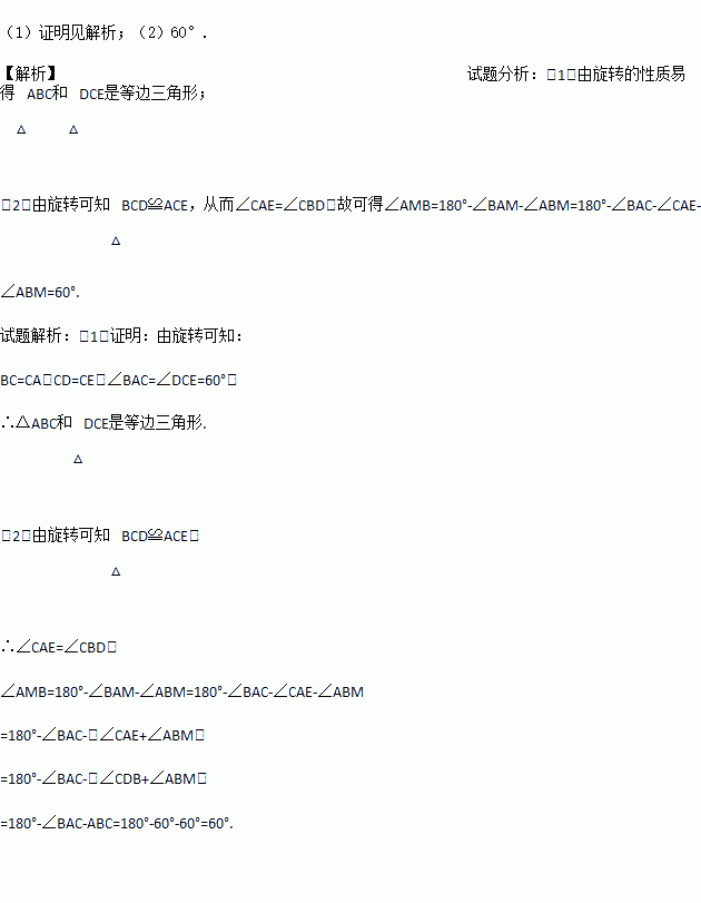 如图,把△ACE绕点C逆时针旋转60°后与△BCD重合,BD、AE.交于点 M,连接AB、DE.