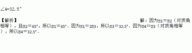 如图所示,直线a,b,c两两相交,∠1=2∠3,∠2=65°,求∠4的度数.