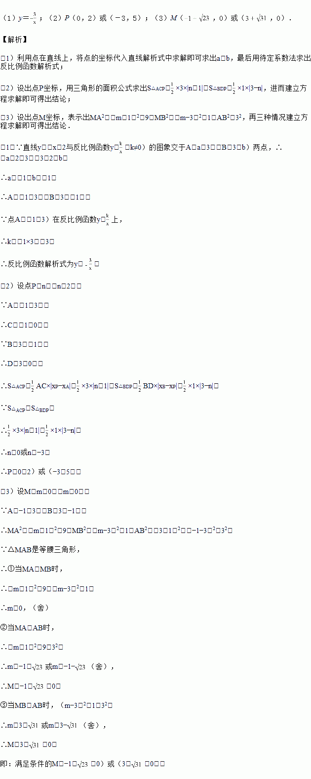(k≠0)的图象交于A(a,3),B(3,b)两点,过点A作AC⊥x轴于点C,过点B作BD⊥x轴于点D.