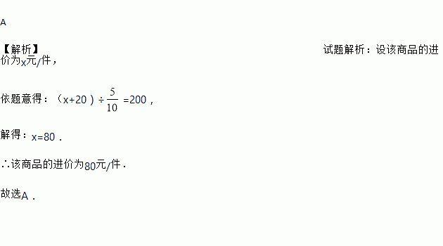 互联网“微商”经营已成为大众创业新途径,某微信平台上一件商品标价为200元,按标价的五折销售,仍可获利20元,则这件商品的进价为( )