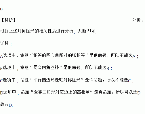C. 平行四边形是轴对称图形 D. 全等三角形对应边上的高相等