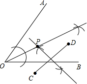 分析:作出CD的垂直平分线,再做出∠AOB的角平分线,两线交点就是P点.