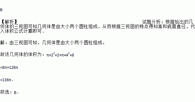 如图是某几何体的三视图,根据图中所标的数据求得该几何体的体积为( )