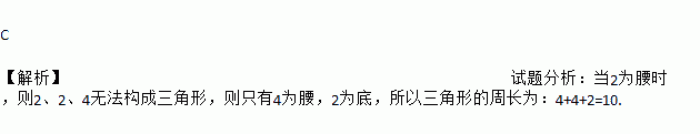 已知一个等腰三角形的两边长分别是2和4,则该等腰三角形的周长为( )