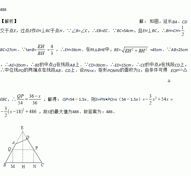 如图,现有一块四边形的木板余料ABCD,经测量AB=25cm,BC=54cm,CD=30cm,且tanB=tanC=