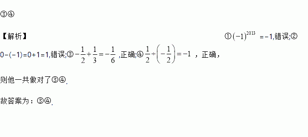 白做了以下道计算题:①;②;③;④ .请你检查一下,他做对题是________(填序号,填错一个该题得分).