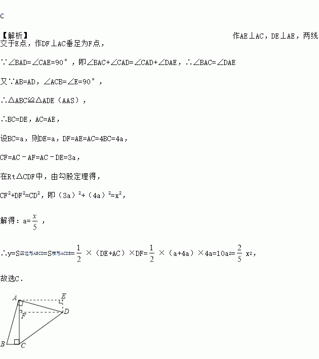 如图,四边形ABCD中,∠BAD=∠ACB=90°,AB=AD,AC=4BC,设CD的长为x,四边形ABCD的面积为y,则y与x之间的函数关系式是( )