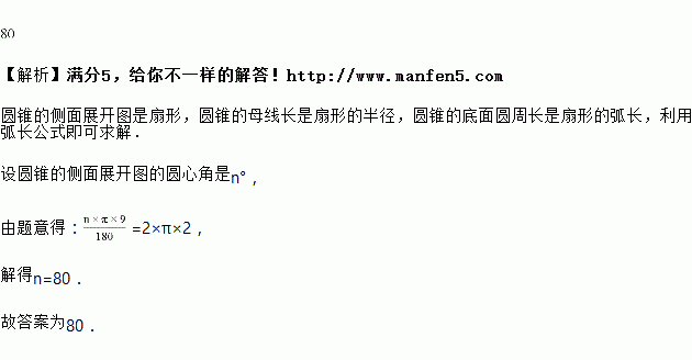 已知圆锥的底面半径为,母线长为,则圆锥的侧面展开图的圆心角是________.