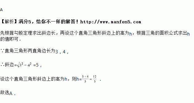 直角三角形的两条直角边长为3、4,斜边上的高为h,则h的值是( ).