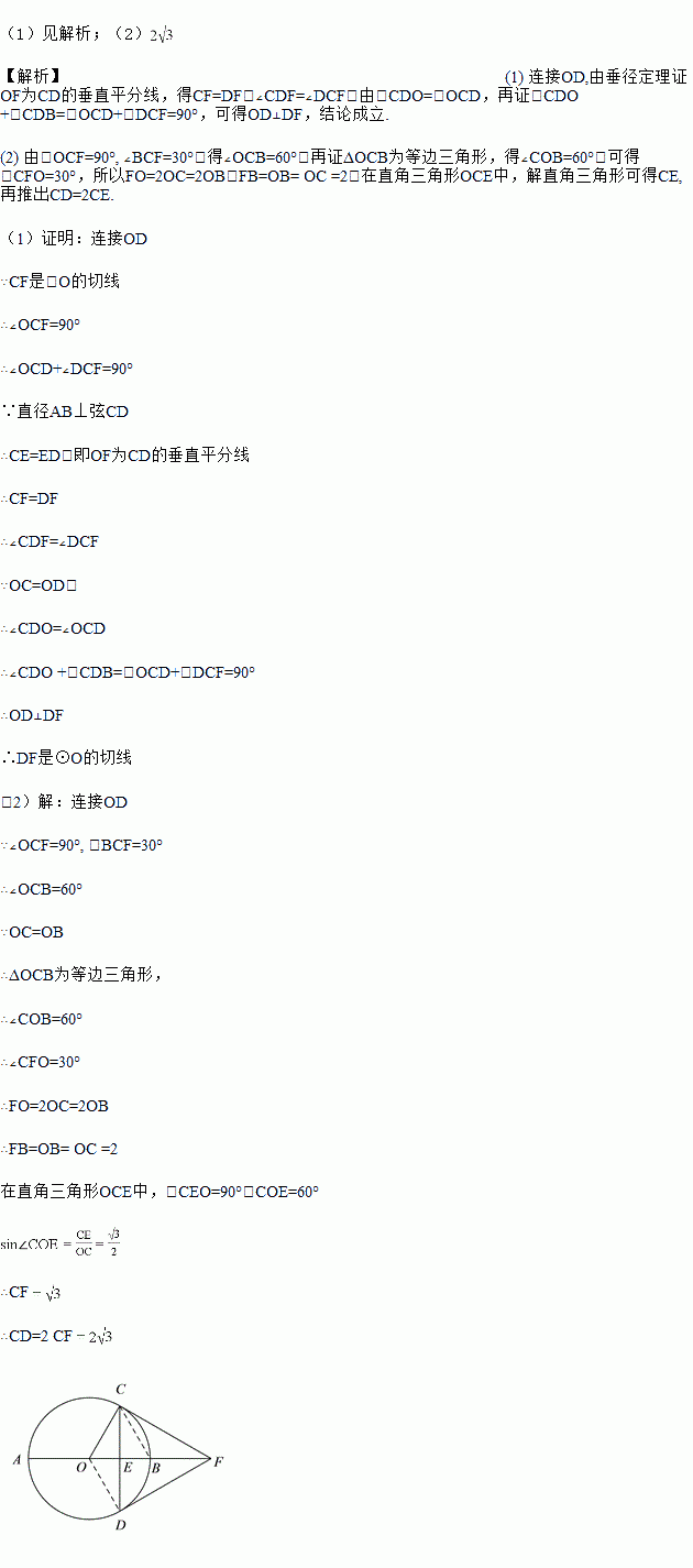 如图,是⊙的直径,弦 于点,过点的切线交的延长线于点,连接DF.