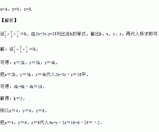 已知,且2x+3y﹣z=18,求4x+y﹣3z的值.