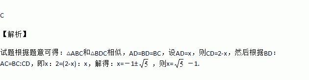 如图,在△ABC中,AB=AC,∠A=36°,BD平分∠ABC交AC于点D,若AC=2,则AD的长是( )