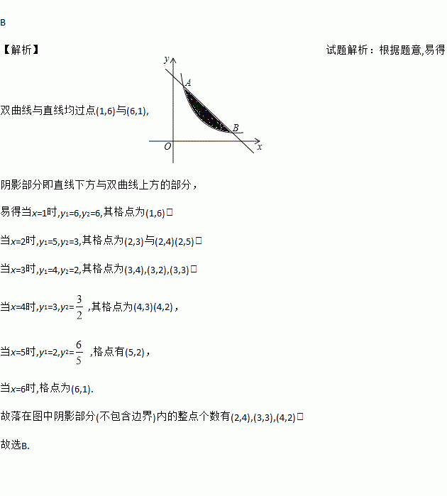 平面直角坐标系中,我们把横坐标、纵坐标都是整数的点称为整点如图,直线和反比例函数的图象交于两点,则落在图中阴影部分不包含边界内的整点个数有个.