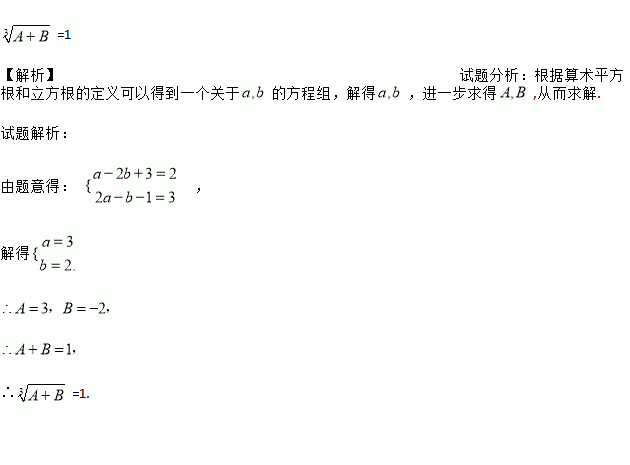 若是的算术平方根, 为的立方根,求的立方根.
