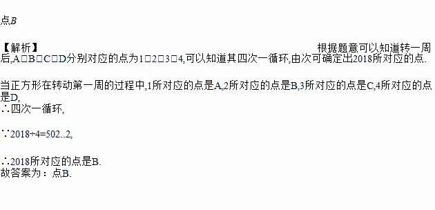 正方形ABCD在数轴上的位置如图所示,点D,A所表示的数分别为0和1,若正方形ABCD绕着顶点按顺时针方向在数轴上连续翻转,翻转1次后,点B所表示的数为2……则翻转2018次后,数轴上数2018所对应的点是________.