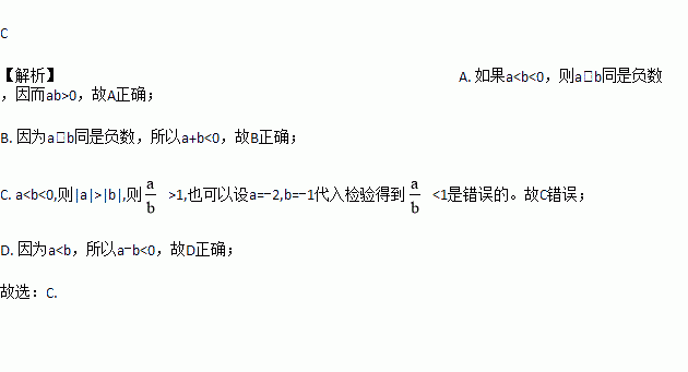 如果a<b<0,下列不等式中错误的是( )