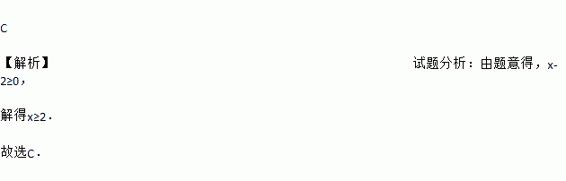 A. x>2 B. x<2 C. x≥2 D. x≤2