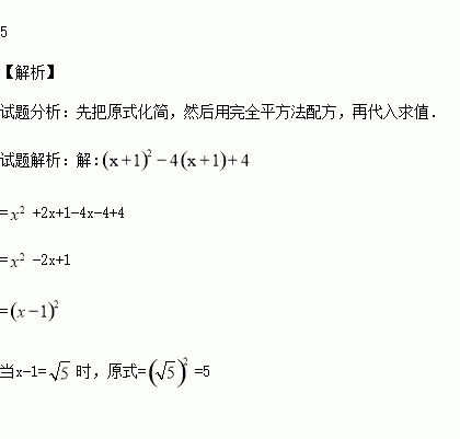 (6分)已知x-1=,求代数式(x+1)2-4(x+1)+4