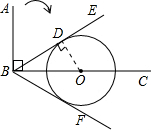 分析:将射线BA绕点B顺时针旋转60°时,记为射线BE,作OD⊥BE,垂足为D,在直角三角形BOD中,证明圆心到直线的距离等于半径即可证得.
