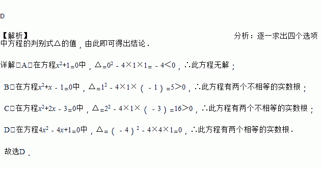下列关于x的一元二次方程中,有两个相等实数根的是( )