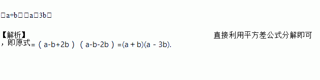 分解因式:(a﹣b)2﹣4b2=________.