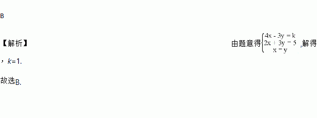 方程组的解x与y的值相等,则k的值为( )