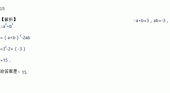 已知a+b=3,ab=-3,则a2+b2的值是________.