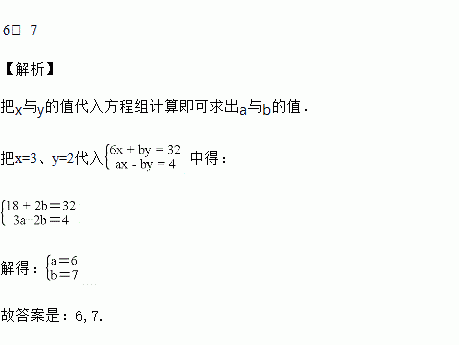 已知,x=3、y=2是方程组的解,则a=_____,b=_____