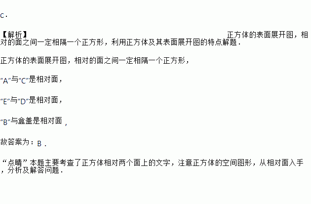 如果按图中虚线对折可以做成一个上底面为无盖的盒子,那么该盒子的下底面的字母是 .
