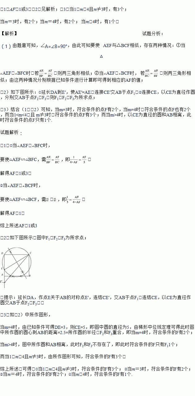 (3)对于每一个确定的m的值,AB上存在几个点F,使得△AEF与△BCF相似?