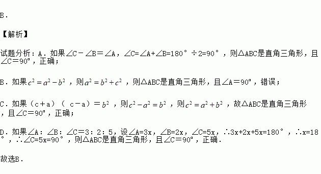 D.如果∠A:∠B:∠C=3:2:5,则△ABC是直角三角形,且∠C=90º.
